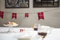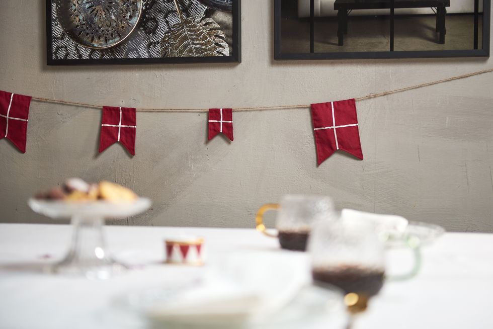 Flagranke med 7 små danske splitflag. Brug den på juletræet eller hængende på en reol eller væg. Mulighederne er mange.