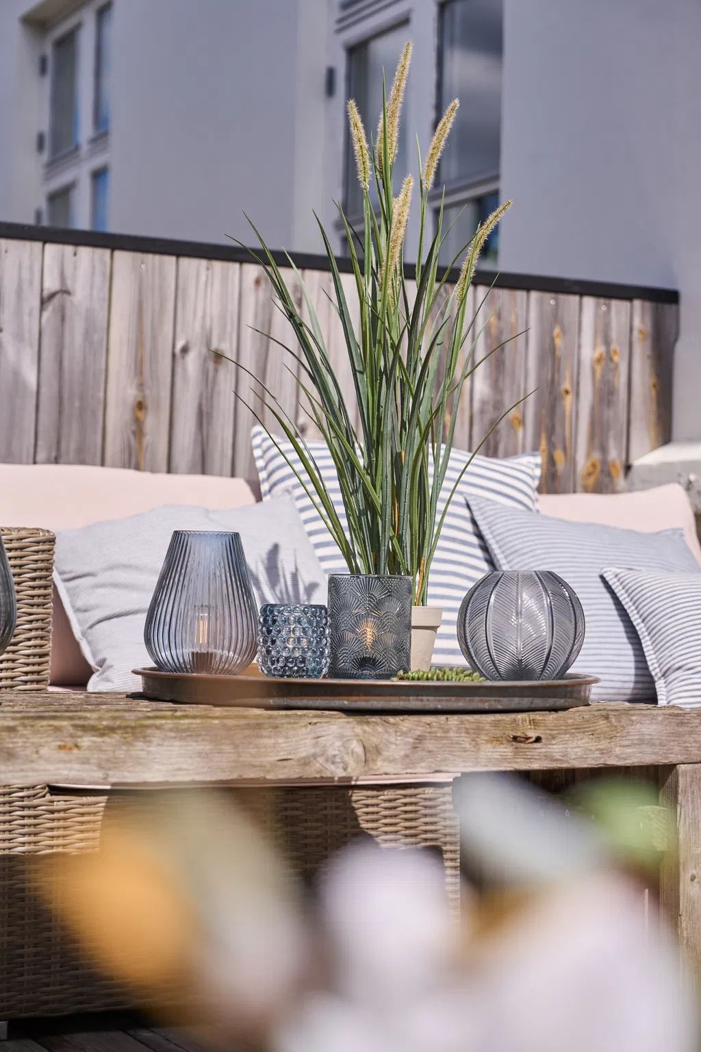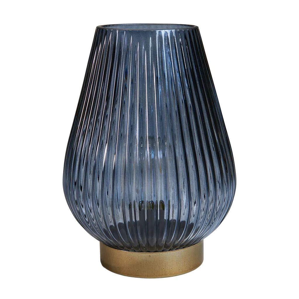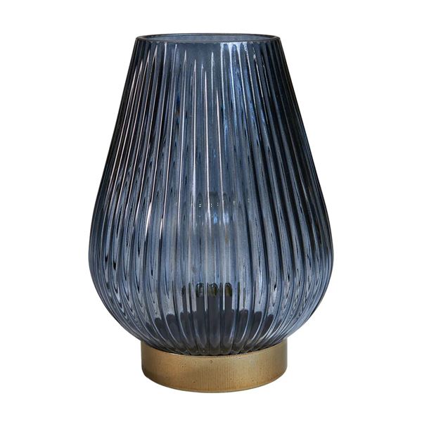 LED lampe med riller i glasset.Perfekt til sommer på terrassen. Tåler ikke vand eller dug. Skal tages ind til aften.