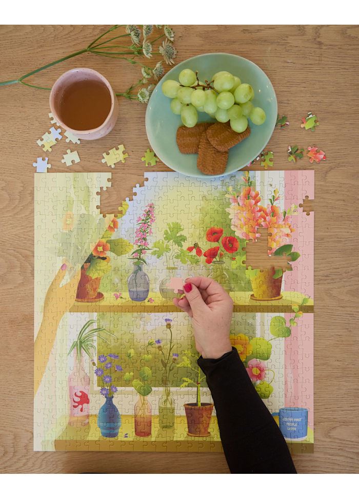 Dette puslespil med 500 brikker indfanger kærligheden til planterne og den særlige stemning, der opstår, når vindueskarmen bliver et levende udtryk for passion og personlighed.
